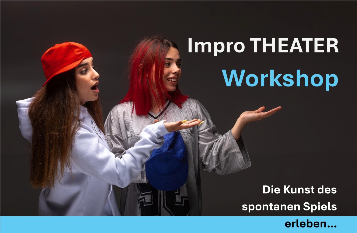 In diesem Workshop erlebst du, wie man aus dem Nichts Szenen zaubern, spontanen Quatsch mit Sinn zu füllen und gemeinsam mit anderen Verrückten Geschichten entstehen zu lassen kann, die es noch nie gegeben hat (und nie wieder geben wird).
