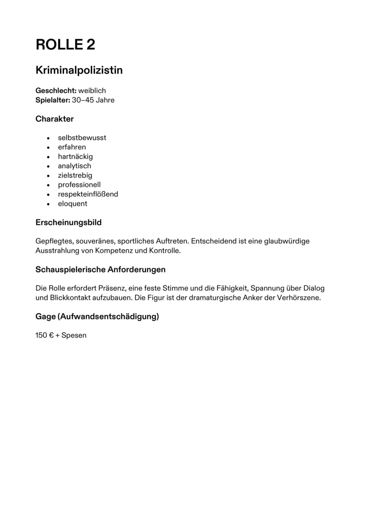 Größe sowie eine kurze Angabe zu schauspielerischer Erfahrung oder Ausbildung;