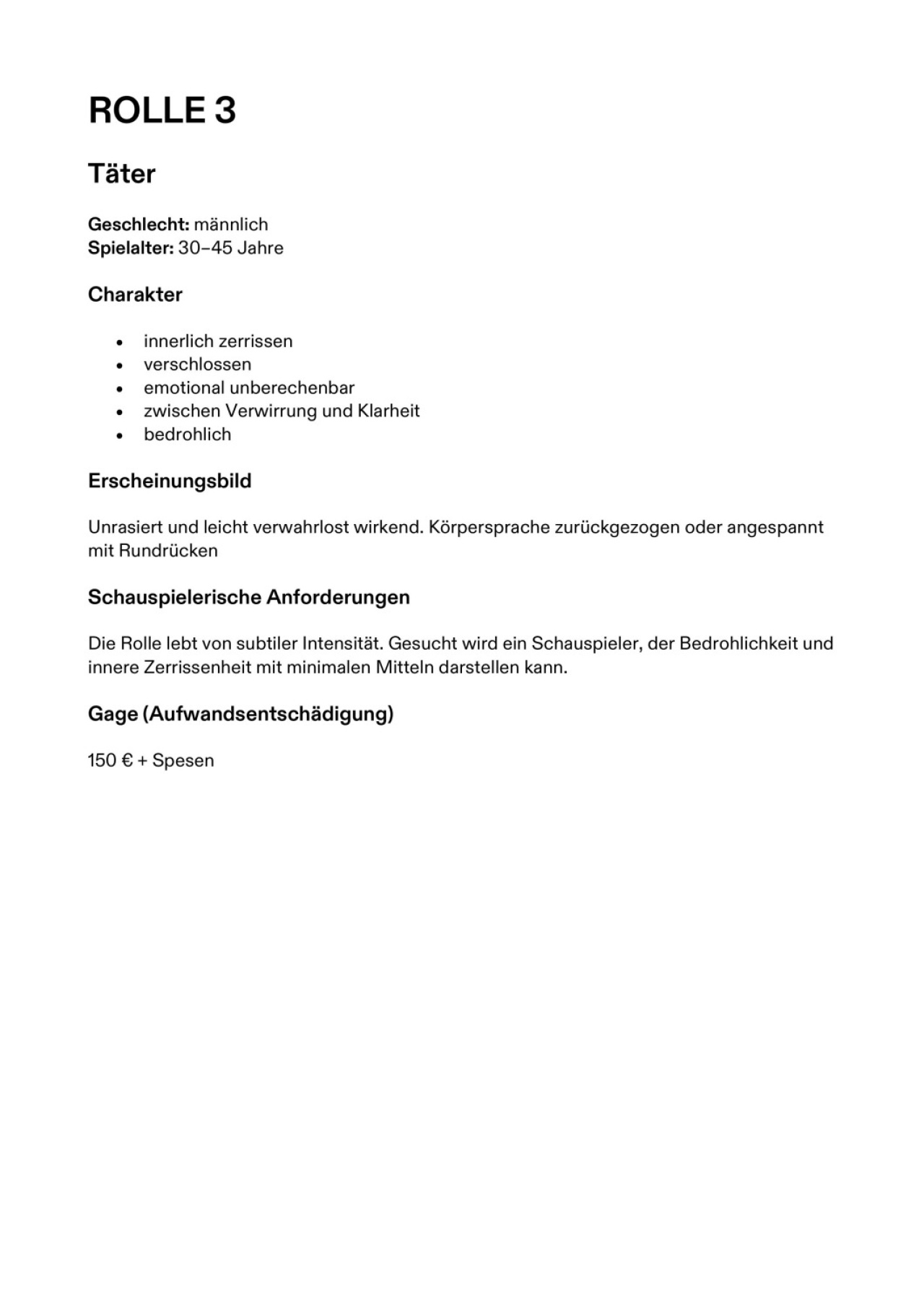 Bewerbungen bitte per E-Mail an: severin.schwaighofer@gmail.com (Betreff: Casting